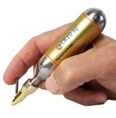 CryoIQ Pro Multi: Interchangeable spray and contact freezing applicators; uses 16g or 25g Nitrous Oxide cartridges; same freezing temperature and pressure