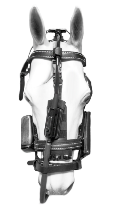 Self-contained, lightweight harness worn by the horse (~5 lbs / 2.2 kg)